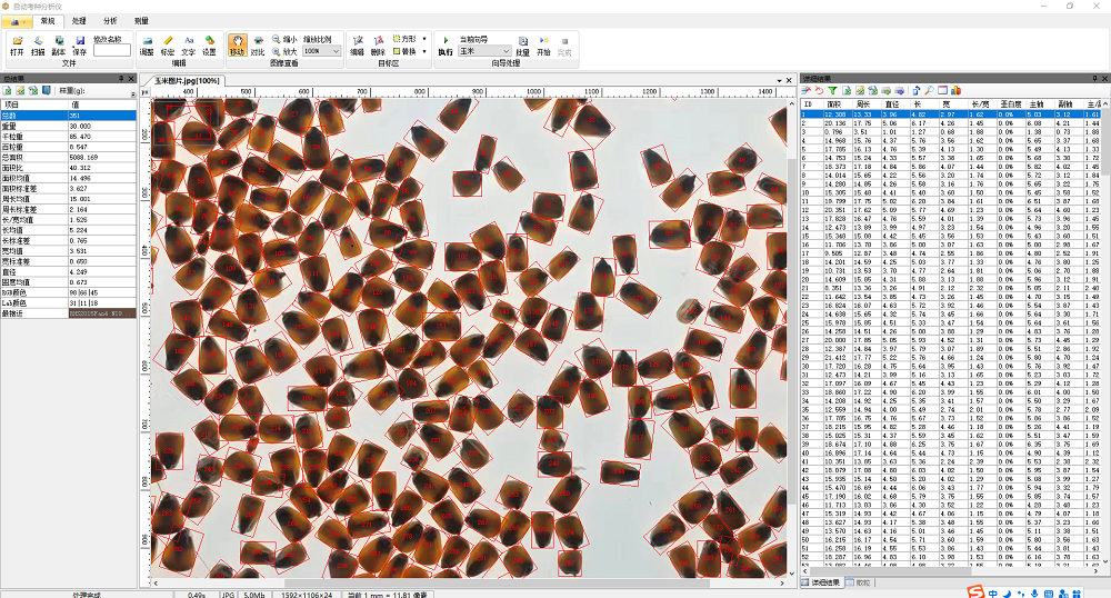 4、可根據(jù)實(shí)際需求自行創(chuàng)制一鍵自動(dòng)分析向?qū)Вm用于水稻、小麥、玉米、豆類、油菜籽、瓜子、蔬菜籽等各類農(nóng)作物的自動(dòng)精確考種、各類糧庫的蟲口自動(dòng)計(jì)數(shù),以及出苗數(shù)、均勻度分析,顯示和輸出計(jì)數(shù)結(jié)果。